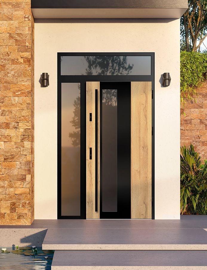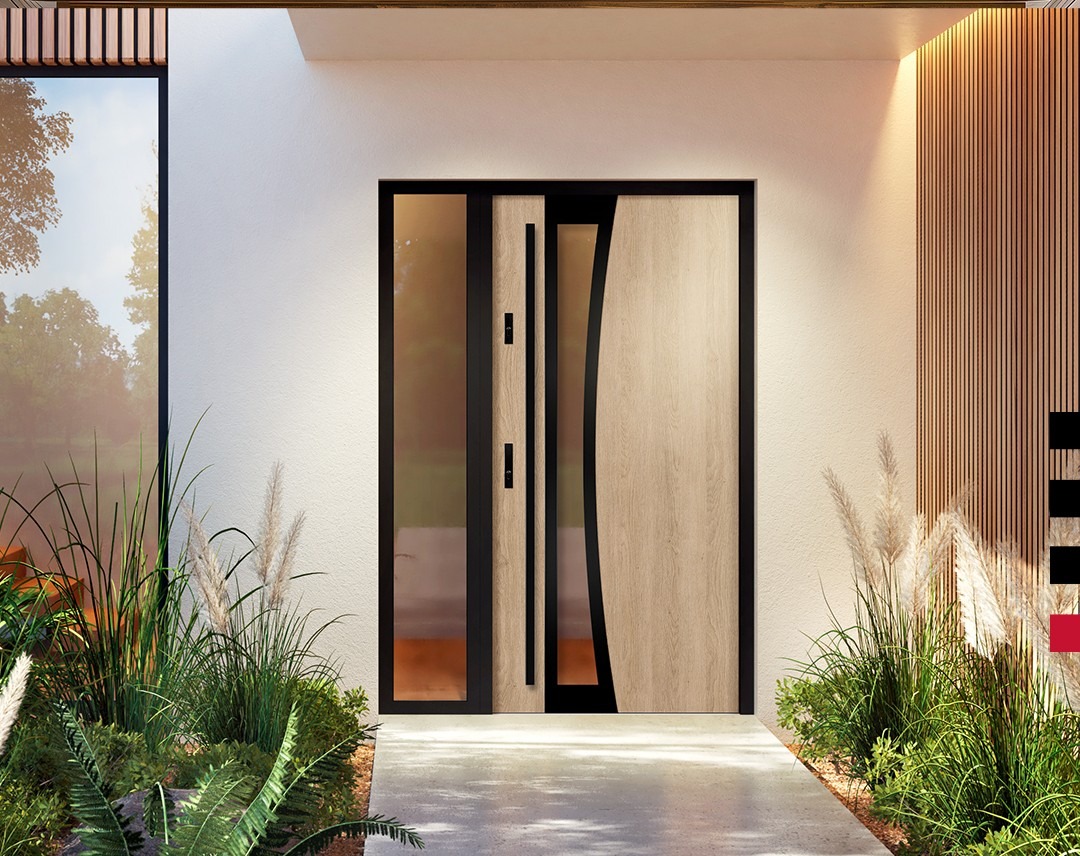 Stalowa struktura zapewnia wysoką odporność mechaniczną i stabilność przez długi czas użytkowania. Wypełnienie termoizolacyjne ogranicza straty ciepła i chroni wnętrze przed hałasem. Wybrane modele mogą być wyposażone w bezpieczne przeszklenia, które doświetlają strefę wejściową, nie obniżając przy tym parametrów izolacyjnych i bezpieczeństwa.
